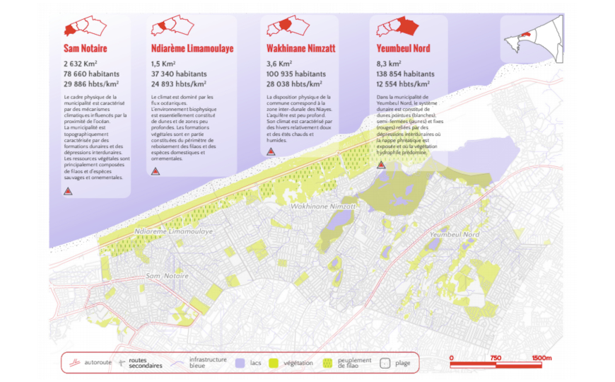 Il cambiamento climatico è qualcosa di estremamente tangibile sulle coste senegalesi, per il progressivo avanzare dell’oceano, che strappa ogni anno strisce di terra alla spiaggia dove ormeggiano le piroghe dei pescatori. In prossimità della capitale, che conosce una costante crescita urbana e demografica, questa erosione delle coste va a interessare anche zone abitate e infrastrutture. Autostrade litoranee di recente inaugurazione sono quotidianamente invase dalla sabbia e rischiano di essere in futuro minacciate dal mare.